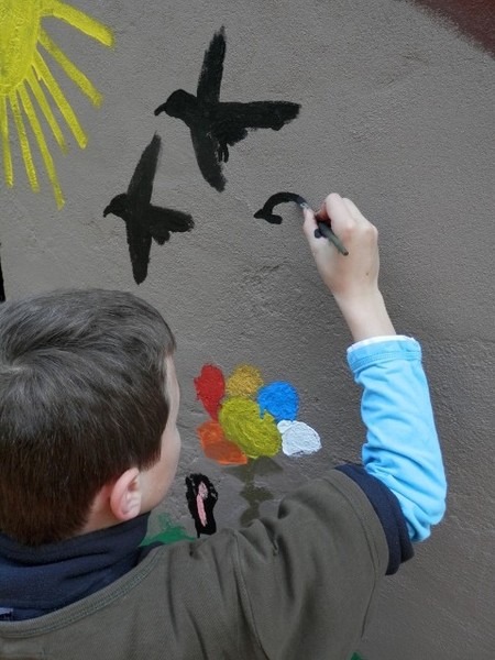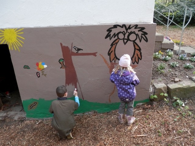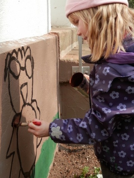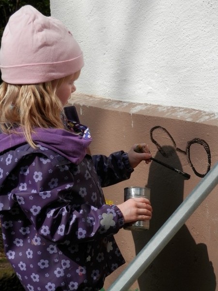 Gemeinsam haben wir den letzten Teil der Außenfassade an der neuen Waldschule in der Bad Oeynhausener Schweiz bemalt.